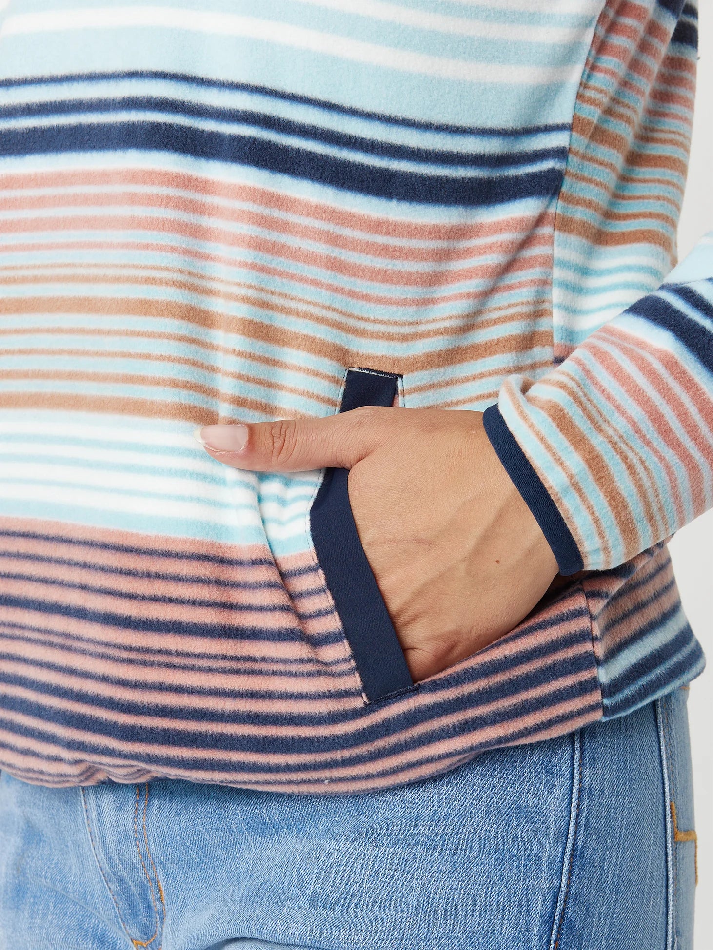 Cinch Women’s Light Blue with Navy Blue & Tan Stripes Sweater
