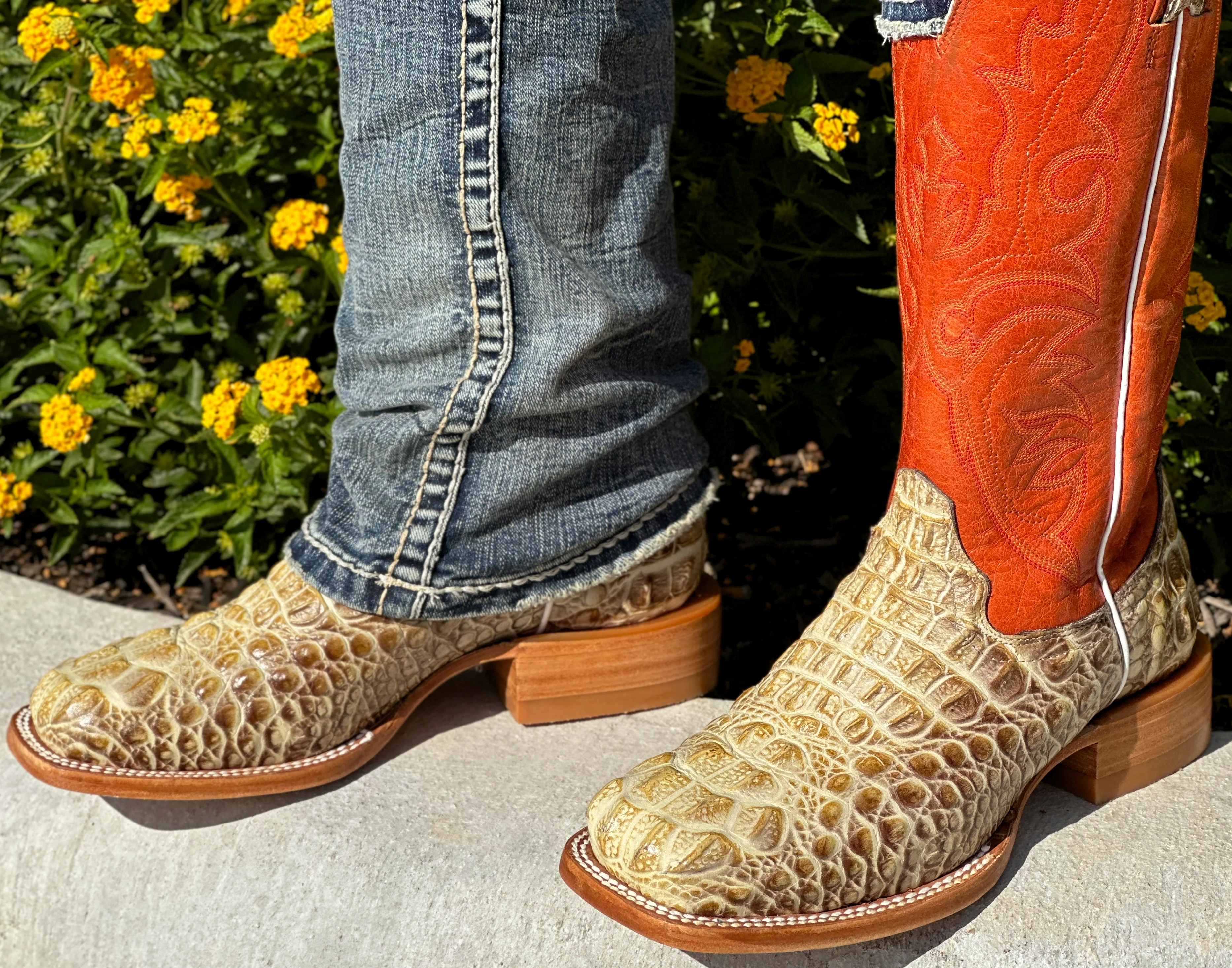 Men’s Bone Crocodile Leather Boots With Orange Shaft