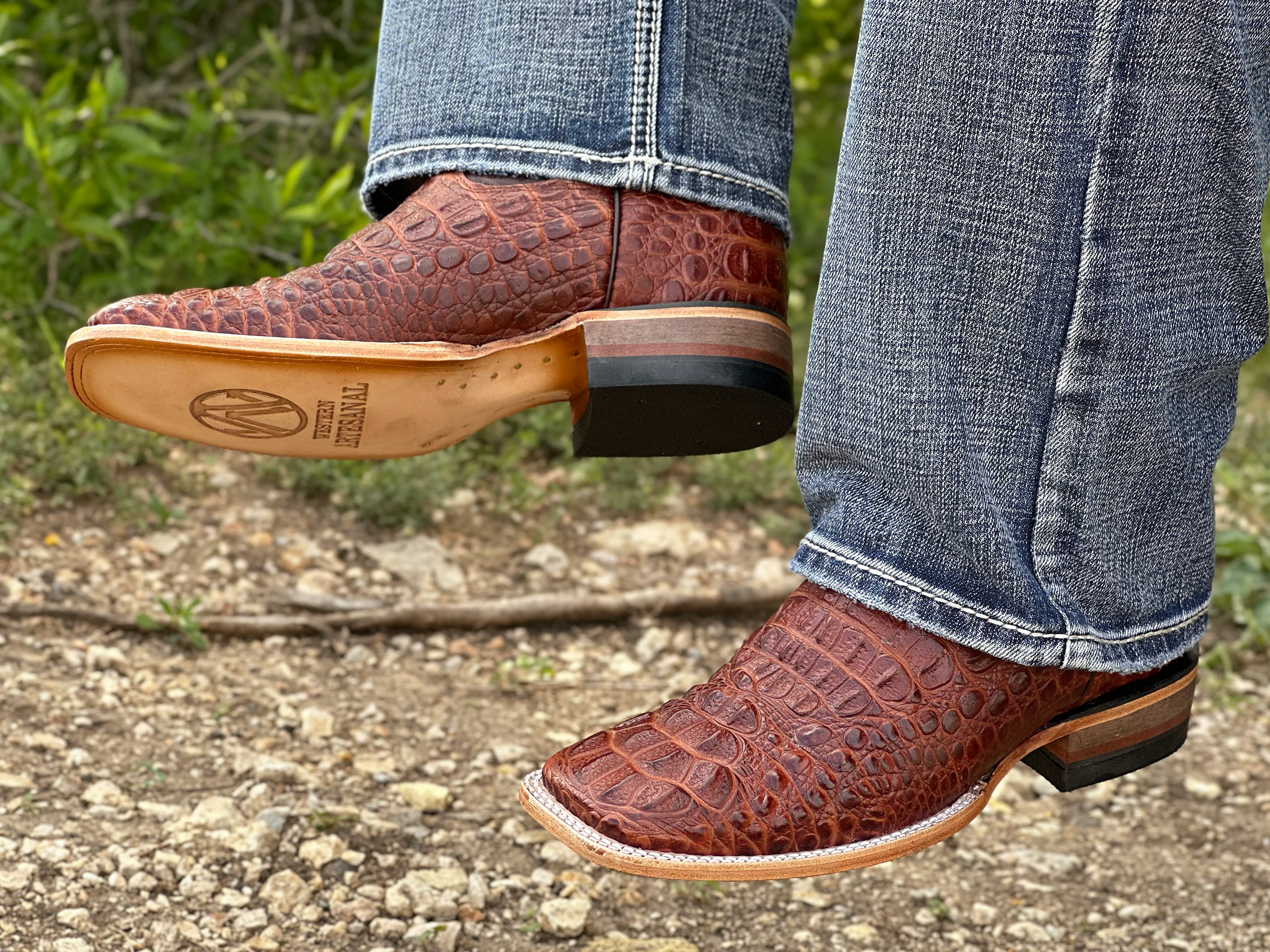 -70%Men’s Cognac Crocodile Leather Boots With Brown Shaft—